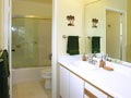 garden view and a comfortable queen size bed. The guest bathroom is adjacent