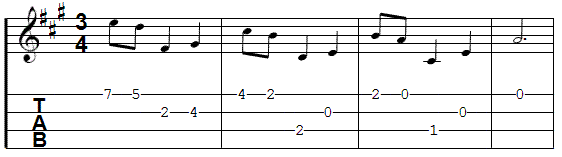 ![]() Here's a very recognizable tune. It's an excerpt from "Grand Vals", a solo composition for guitar written by Francisco Tarrega in 1902. Most people recognize it, though, as the Nokia default ringtone. Note the key signature: 3 sharps (key of A).  So the scale has